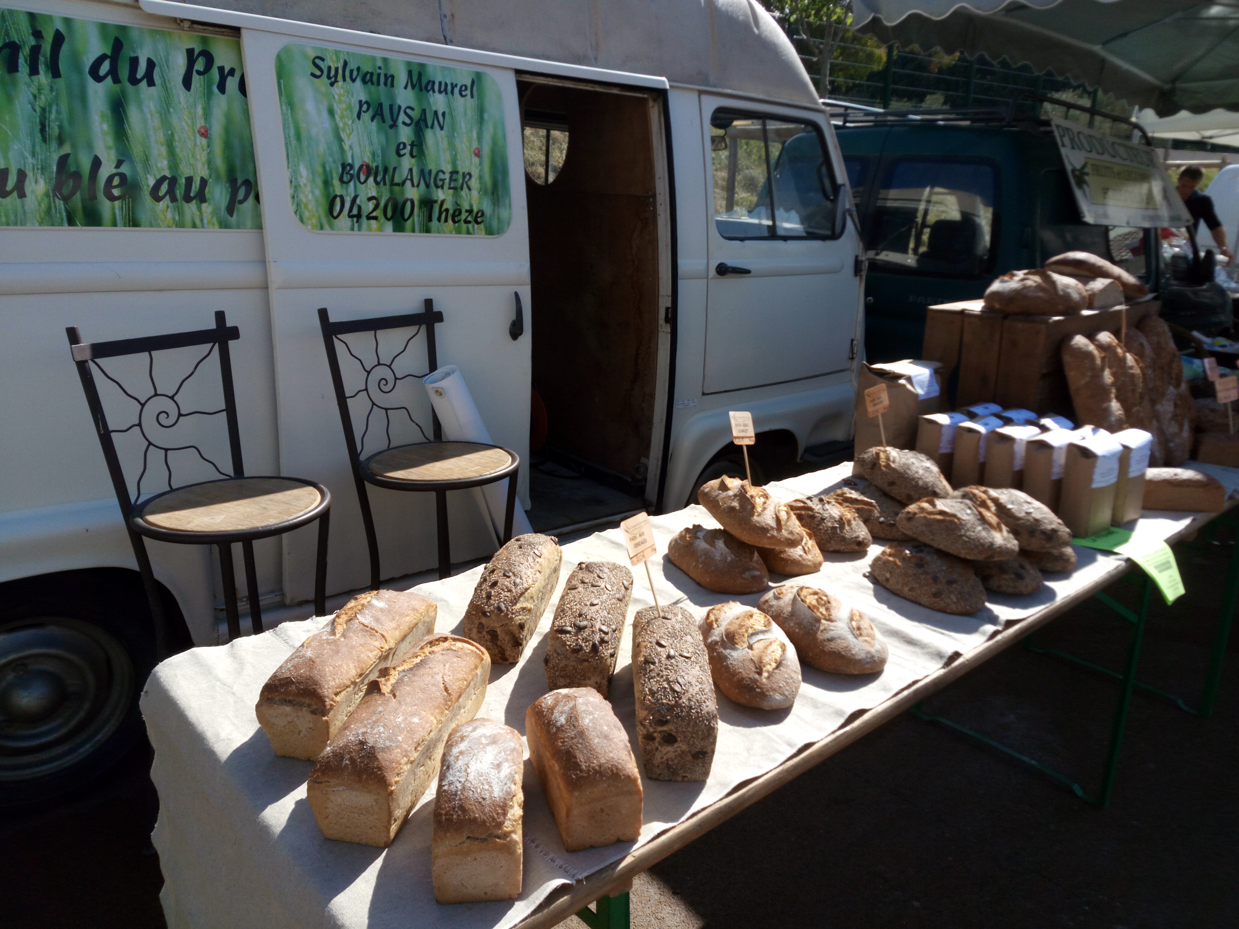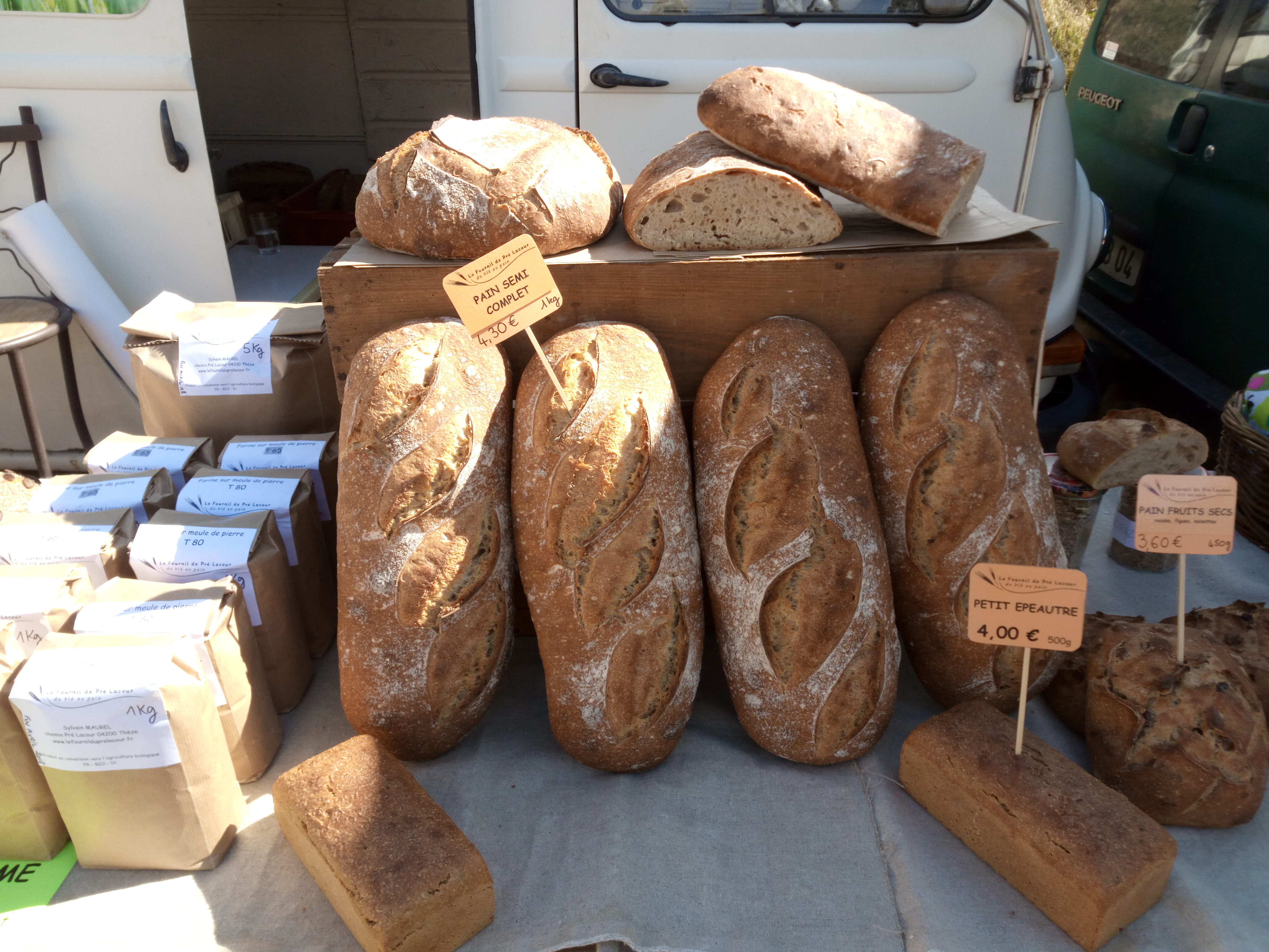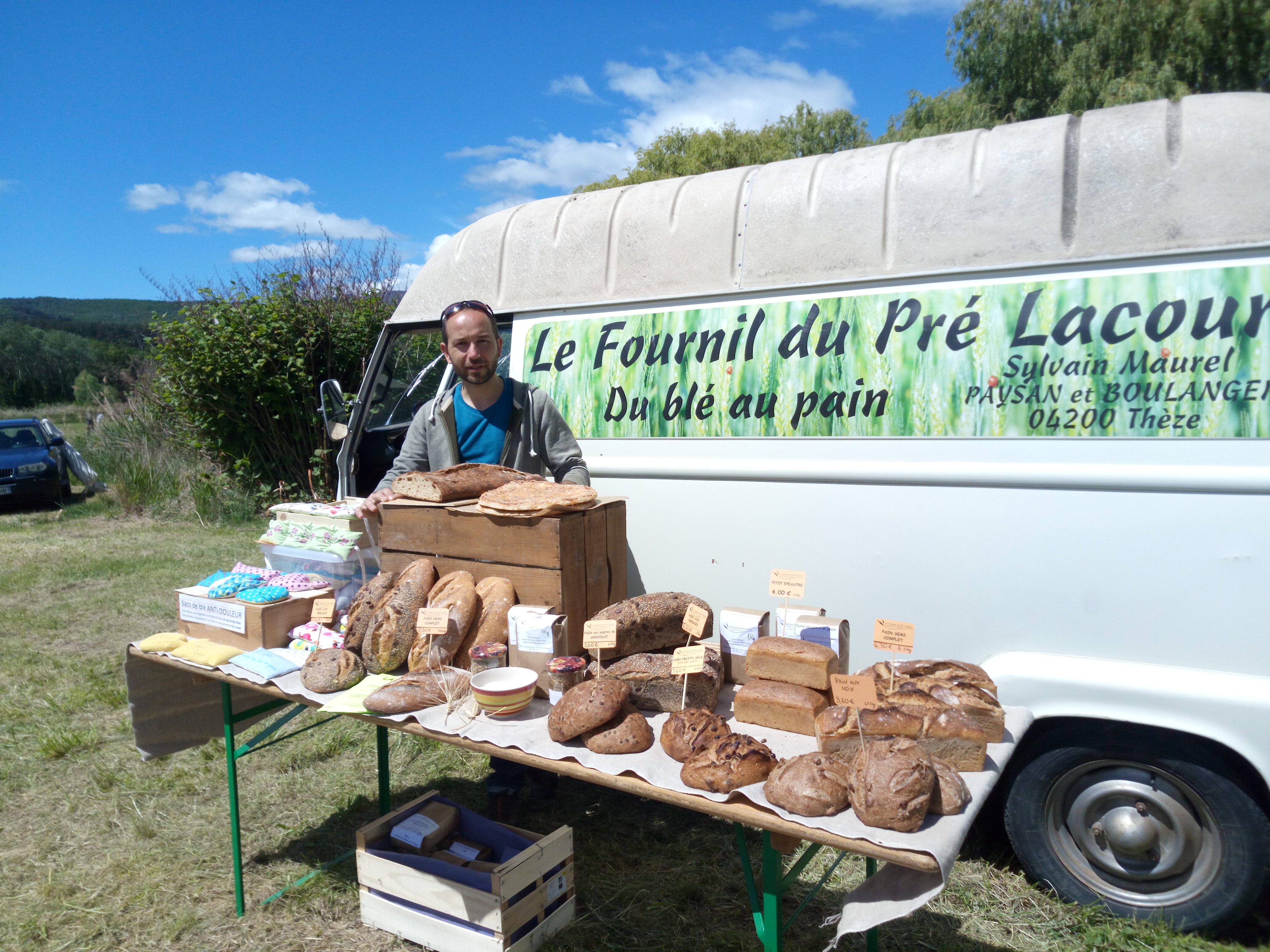 Stand Le fournil du Pré Lacour : présentation du projet « du blé au pain » et vente de pain au levain naturel.